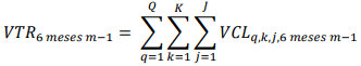 | Promedio de las ventas del distribuidor mayorista q, del combustible líquido k, a la estación de servicio o distribuidor de GLP j, de los 6 meses anteriores al mes m, en galones por mes, con el fin de atender los beneficiarios del proyecto. | |