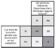 La calificación de este criterio depende de si la línea de inversión genera disminución en los subsidios y quién es el beneficiario de la disminución. El puntaje máximo que puede obtener este criterio es 40, si la respuesta es afirmativa en las dos preguntas planteadas.