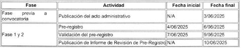 ARTÍCULO 3o. <Ver Notas de Vigencia> Con fines informativos y de trazabilidad administrativa, se incorpora a la presente resolución un cronograma actualizado del proceso de la convocatoria PRONE No. 001-2025, en el que se refleja la modificación de fechas derivada de lo dispuesto en el artículo 1 de este acto. Dicho cronograma no sustituye los términos jurídicamente vinculantes definidos en el Anexo Técnico adoptado mediante Resolución No. 40243 del 3 de junio de 2025, y se publica como documento auxiliar de apoyo operativo.