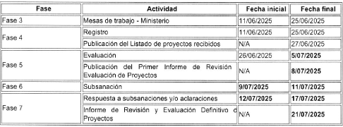 Nota: Posterior a la evaluación, la Dirección de Energía Eléctrica publicará el día 8 de julio de 2025 un "Primer Informe de Revisión y Evaluación de Proyectos" en la págína web del Ministerio.