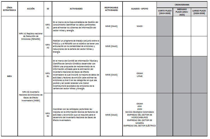 Esta acción tiene como objetivo el desarrollo e Implementación de la herramienta de MRV, Incluyendo las salidas de los datos gráficos y la identificación de los datos pertinentes que permitirán:, monitorear los avances en mitigación de emisiones de GEI y adaptación al cambio climático y alimentar los sistemas de información del sector minero - energético.