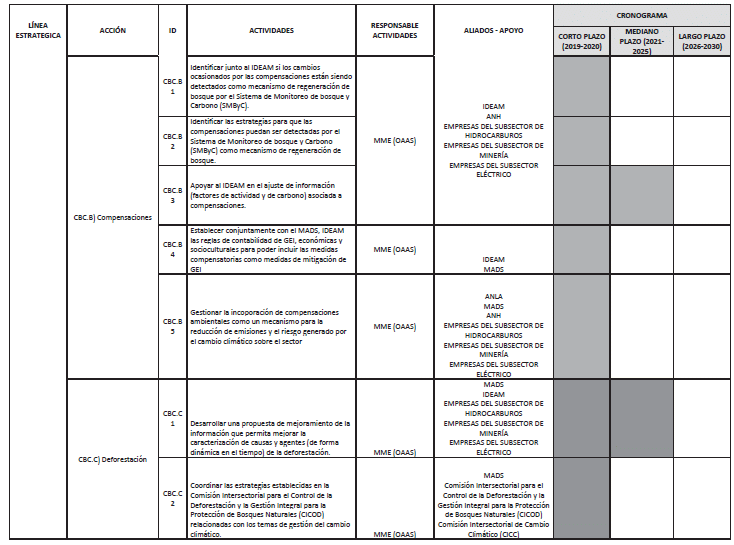 Con esta acción apoyará la estructuración de la línea de compensaciones ambientales como estrategia de mitigación al cambio climático. Además se identificará la Información del estado de las compensaciones ambientales en el sector minero energético y establecer las reglas para incluir las compensaciones como medidas de mitigación cuando a ello haya lugar.