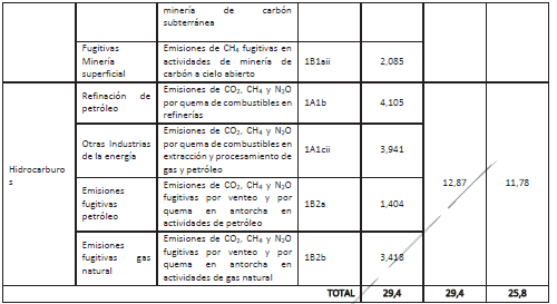 Tabla 3. Emisiones GEI del sector minas y energía, 2010 en Mtan CO2eq