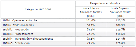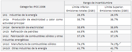 2.1.1 Incertidumbre asociada a las emisiones del sector minas y energía