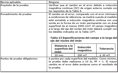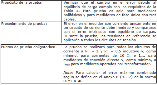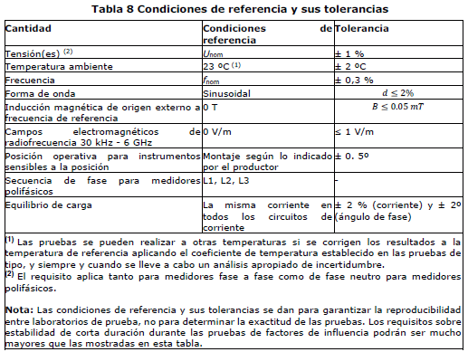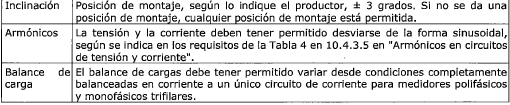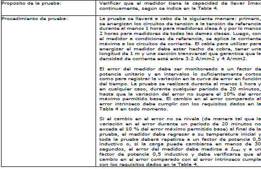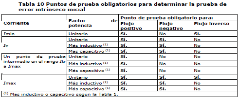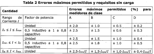 Los medidores deben cumplir con los requisitos de exactitud de la Tabla 2. Como mínimo, los mismos deben ser verificados a las siguientes corrientes: