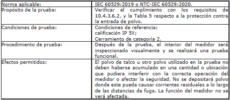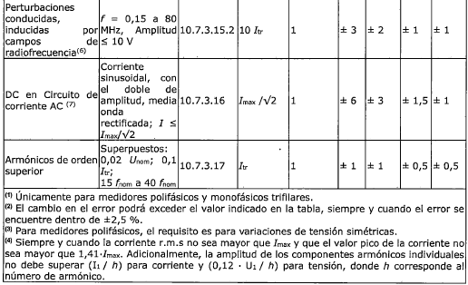 - IEC 62053-21:2020 Electricity metering equipment - Particular requirements - Part 21: Static meters for AC active energy (classes 0,5, 1 and 2) o NTC 4052:2022 Equipos de medición de energía eléctrica. Requisitos particulares. Medidores estáticos de energía activa de c. a. (clases 0,5, 1 y 2); o; IEC 62053- 22:2020 Electricity metering equipment - Particular requirements - Part 22: Static meters for AC active energy (classes 0,1S, 0,2S and 0,5S) o NTC 2147:2022 Equipos de medición de energía eléctrica. Requisitos particulares. Medidores estáticos de energía activa de c. a. (clases 0,1 S, 0,2 S y 0,5 S);