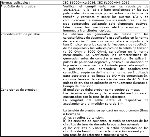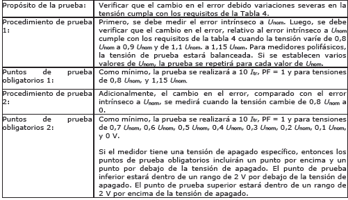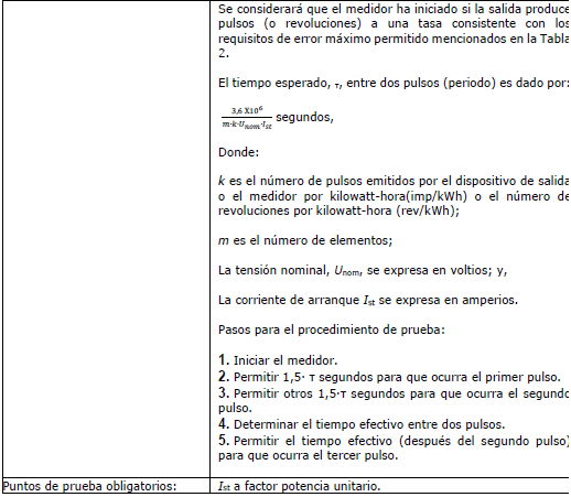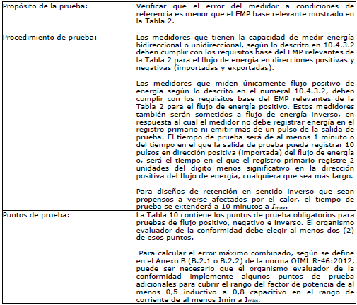 Emin, según se indica en 10.7.2.5: La energía que pasa por el medidor será calculada utilizando el número de pulsos de la salida de prueba; se determinará la diferencia relativa entre esta energía y la energía registrada. Esta diferencia relativa no debe ser mayor que un décimo del error máximo permitido base. Esta prueba se realizará a una única corriente arbitraria I