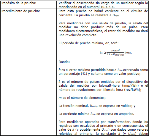Para esta prueba no habrá corriente en el circuito de corriente. La prueba se realizará a Unom. Para medidores con una salida de prueba, la salida del medidor no producirá más de un pulso. Para medidores electromecánicos, el rotor del medidor no dará una revolución completa.