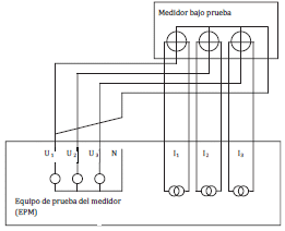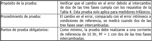 En el caso de medidores de tres fases con un modo de conexión alternativo de una fase o que estén siendo utilizados como medidores de dos fases, la prueba de carga de una carga se realizará por separado para cada fase a: