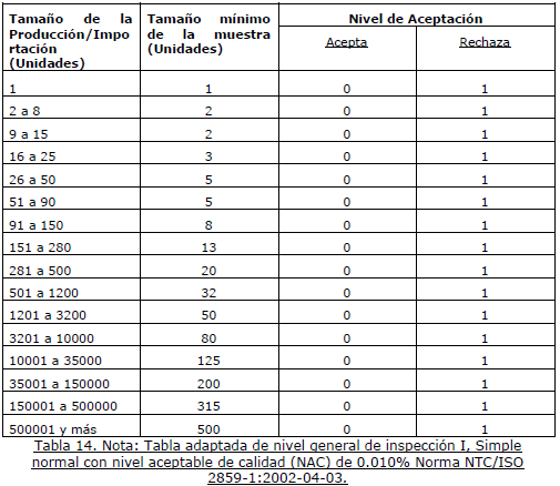 10.10.3.2 Tabla niveles mínimos de muestra para ensayos y exámenes para la expedición de la declaración de conformidad del medidor de energía eléctrica.