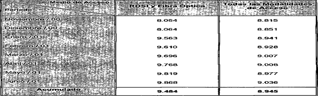 "Refiriéndose a las diferentes modalidades de conexión a la Internet, es decir a los Accesos Conmutado, RDSI y Fibra Óptica, en el informe de la investigación adelantada se afirma lo siguiente: '...existen marcadas diferencias tarifarias y de servicio que llevan a que cada modalidad de conexión a internet constituya un mercado único y perfectamente separado de los demás. Así pues para quién accede a Internet a través del sistema RDSI, por ejemplo, no será un sustituto el acceso al sistema a través de la fibra óptica dado que la diferencia tarifaria desestimularía su traslado, y además, no le resultaría atractivo en la medida en que a través del primer sistema de acceso RDSI puede autodeterminar su consumo y en consecuencia el valor de la facturación, circunstancia que no tiene lugar en el sistema de fibra óptica'.