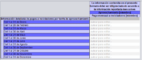 Se debe registrar cada uno de los compradores de material aprovechable y en cada caso, relacionar el valor de la compra para cada uno de los meses del año. El prestador podrá adicionar tantas filas como compradores haya tenido en el año.