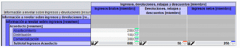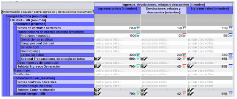 Para los servicios de Energía (SIN –ZNI). Gas Combustible por Redes y Gas Licuado del Petróleo, el valor de las devoluciones, rebajas y descuentos se deben registrar por actividad de cada servicio en la columna identificada con el mismo nombre; los ingresos netos serán la diferencia entre el valor de los ingresos brutos menos los descuentos rebajas y devoluciones; por ejemplo: