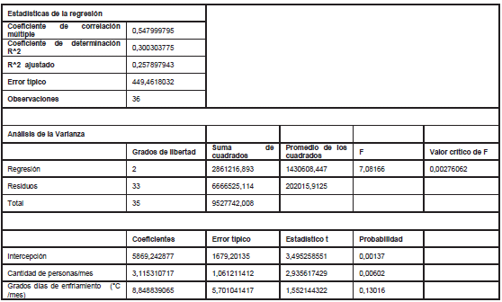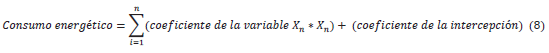 Para la selección del modelo de LBEn, se realiza el análisis de regresión para verificar si las dos variables o solo una de ellas son significativamente relevantes para explicar los cambios en los consumos de energía.