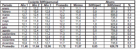 Lo anterior representó una disminución del consumo de energía reportado durante esos meses. Esta disminución fue del 25% de la energía durante esos meses.
