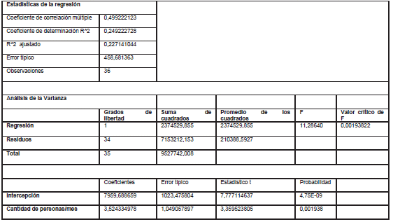 Análisis de regresión para una variable (Cantidad de personas/mes):