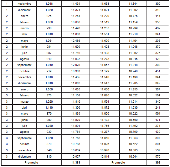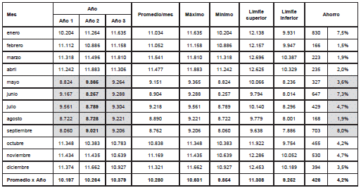 Con estos nuevos valores ajustados para los mismos meses de los años 1 y 3 se calcula el potencial de ahorro ajustado, que se presenta en la siguiente tabla.