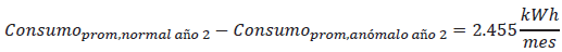 Se calcula el promedio de los consumos para los meses “anómalos” del año 2.