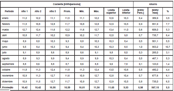 Lo anterior representó una disminución del consumo de energía reportado durante esos meses. Esta disminución fue del 25% de la energía al consumo durante esos meses.