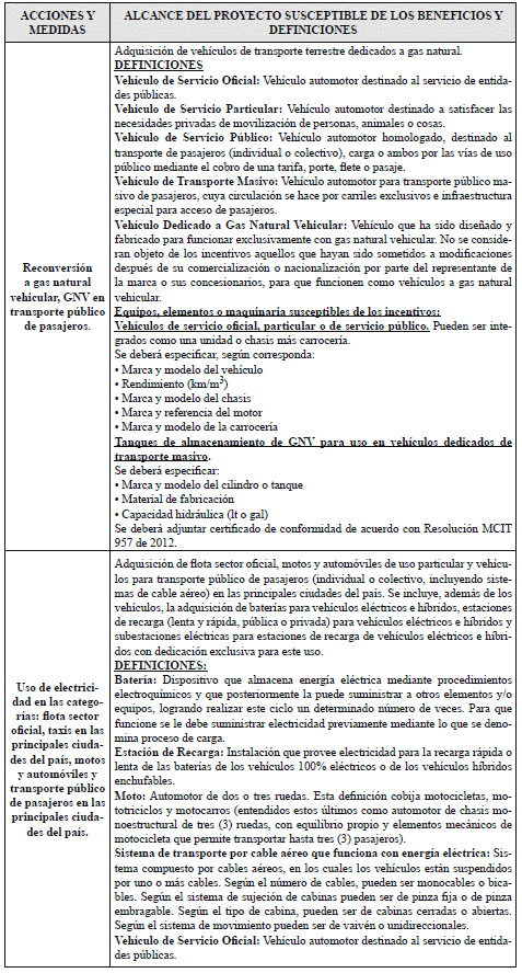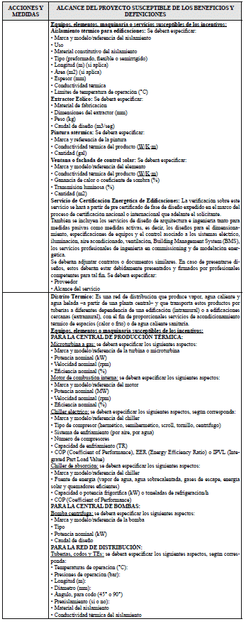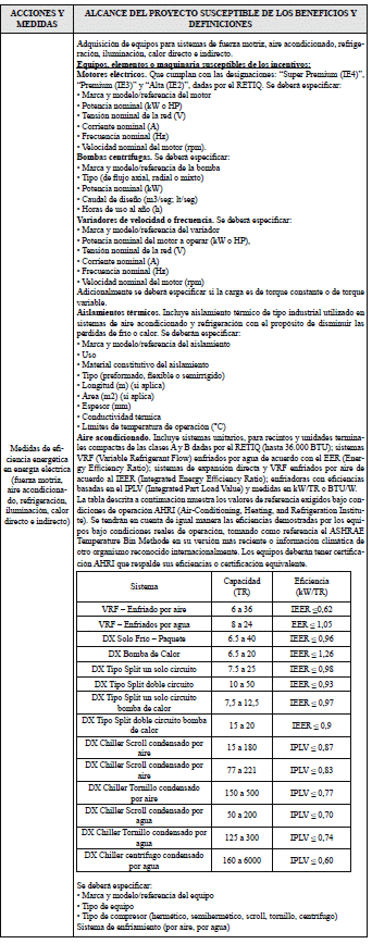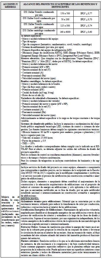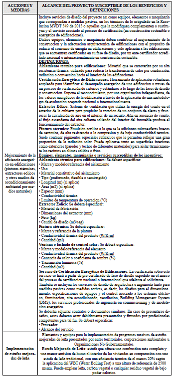 TABLA 1. ALCANCE DE LOS PROYECTOS SUSCEPTIBLES DE LOS BENEFICIOS