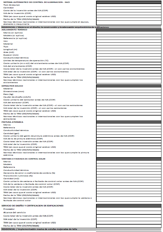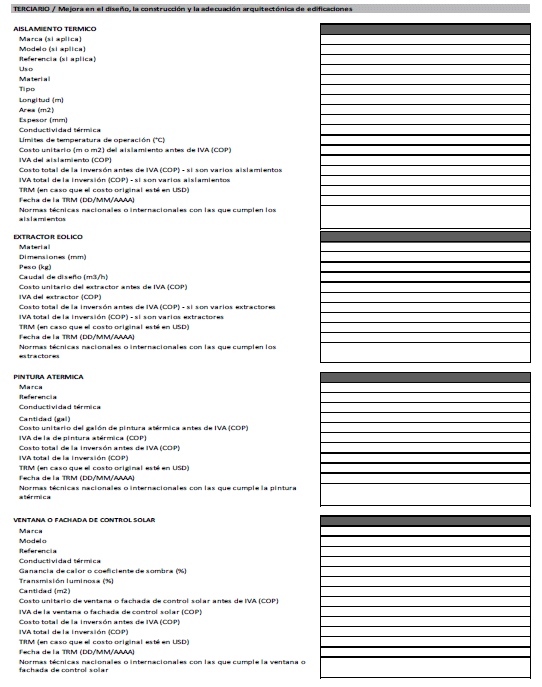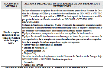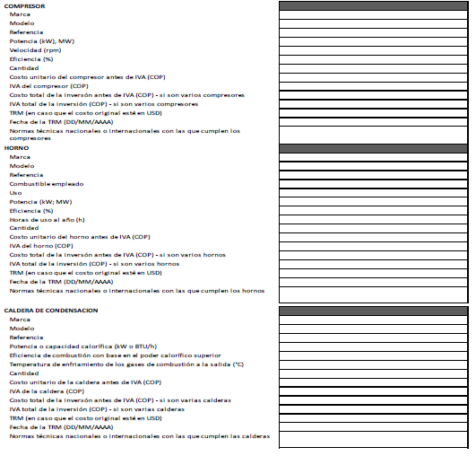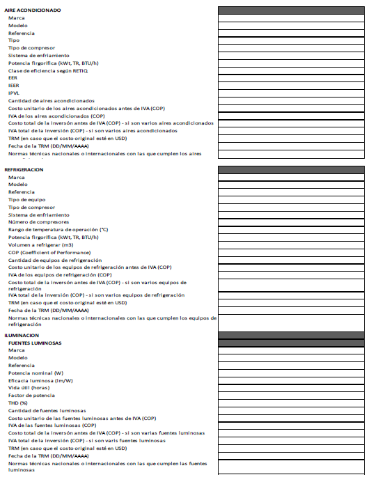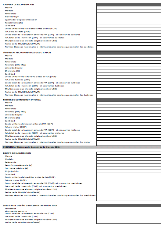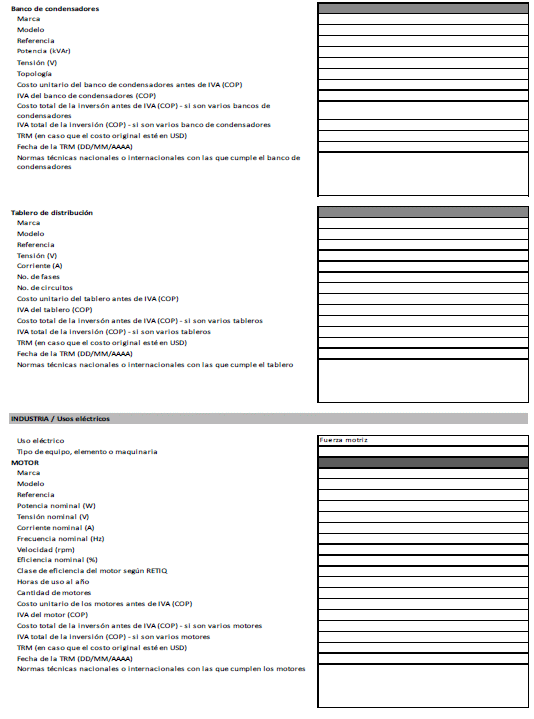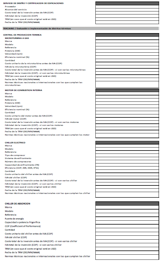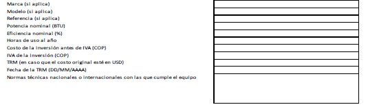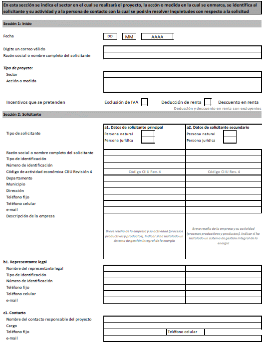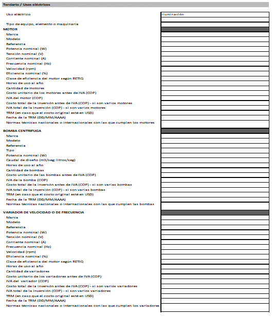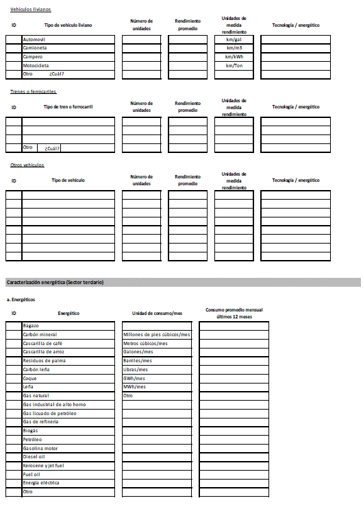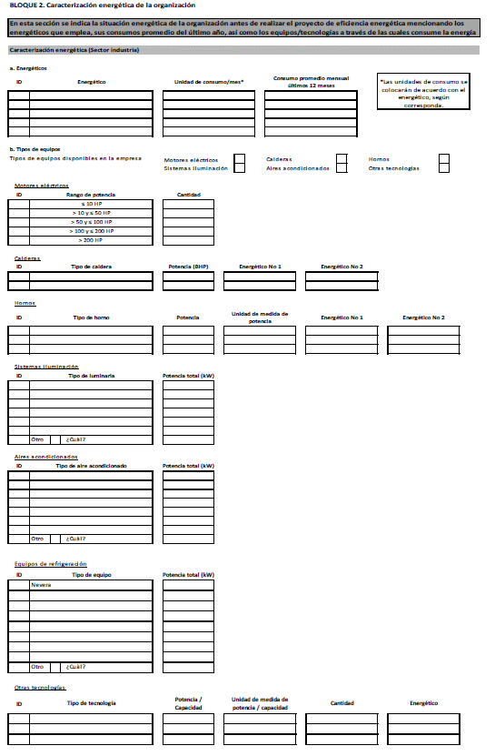 Nota: La caracterización energética hace referencia a la descripción de la matriz energética y de los principales equipos que impliquen uso intensivo de la energía. Permite determinar la partición anual de los energéticos, en términos absolutos y porcentuales, en la organización o persona natural o jurídica titular del proyecto de eficiencia energética/ gestión de la energía que opta por los incentivos tributarios.