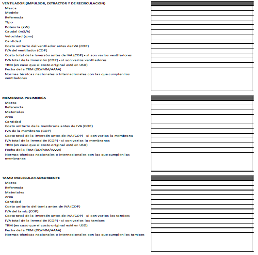 d) La descripción detallada de las inversiones incluyendo los elementos, equipos o servicios, su función, sus características técnicas, sus costos (discriminando el IVA) y las normas técnicas frente a las cuales cumplen requisitos de calidad y desempeño energético y/o los certificados correspondientes, de conformidad con el Anexo número 4 de la presente resolución.