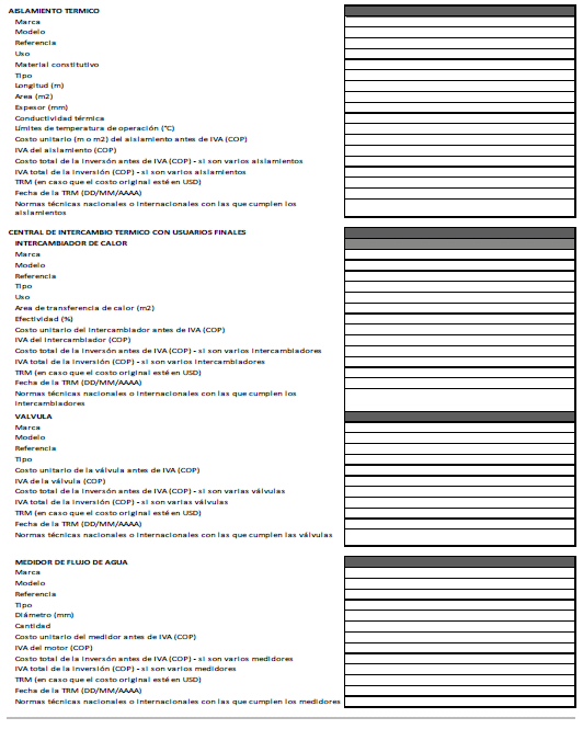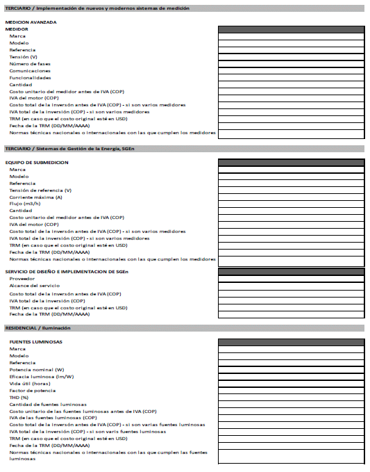 Dicha matriz debe incluir los consumos mensuales de todos los energéticos, con la finalidad de realizar el cálculo de los ahorros que se pretenden con el proyecto y cuantificar el aporte a las metas de eficiencia energética del Plan de Acción Indicativo PAI 2017-2022 que fueron concertadas en las Resoluciones MME-MADS-MHCP 1988 de 2017 y MME-MADS-MHCP 0367 de 2018.