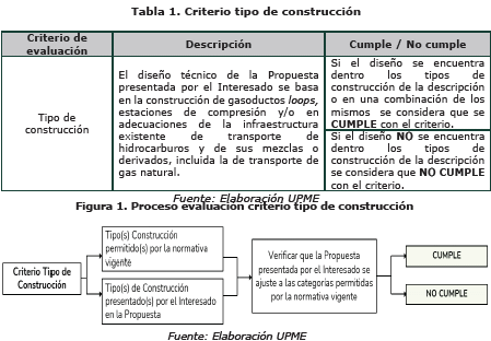 Se inicia la evaluación con el criterio de tipo de construcción, cuyo objetivo es verificar que la Propuesta presentada por el Interesado se ajuste a las categorías señaladas por la normativa vigente. Para ello, la UPME revisa la información contenida en el anexo “FORMATO 2. Información general del proyecto” y la descrita en los numerales 5.2 y 5.3 de la presente resolución.