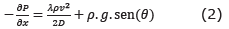 El factor de Darcy determina el decaimiento de la presión por la relación:
