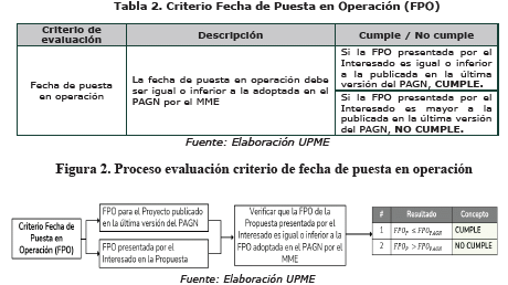 El objetivo de este criterio es verificar que la fecha de entrada en operación del Preoyecto de la Propuesta del Interesado, FPOp es igual o inferior respecto a la FPO adoptada en el PAGN por el MME, FPOPAGN, Para ello, la UPME revisa la información contenida en el anexo "FORMATO 2. Información general del proyecto" y lo descrito en el numeral 5.2.5 de la presente resolución.
