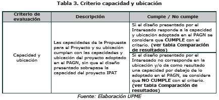 El objetivo de este criterio es verificar que el diseño técnico de la Propuesta presentada por el Interesado cumple con la capacidad y ubicación del Proyecto adoptado por el PAGN.