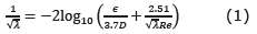 Se determina la presión del fluido en el tramo evaluado, con base en la ecuación de White-Colebrook para fricción entre los ductos, donde se relaciona el factor de Darcy
